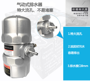 利用壓縮空氣在AKP-04S自動(dòng)排器中的壓力差來(lái)控制閥片的開關(guān)從而達(dá)到自動(dòng)排水的效果。安裝方便,無(wú)須接線,可靠性高,安全性高;不畏有機(jī)溶劑,自清功能強(qiáng),兩道過濾網(wǎng),閥口不易堵塞,確保排水通暢;閥體采用螺牙式拆裝,平時(shí)保養(yǎng)非常方便,其排水性能是其它排水器無(wú)法比擬的。SKP-04S自動(dòng)排水器是冷干機(jī)、儲(chǔ)氣桶、活塞機(jī)、精密油霧過濾器、冷卻器自動(dòng)排放水份、油份的,省去手動(dòng)放水的麻煩。