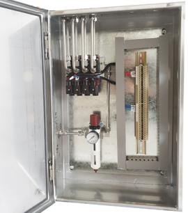 集控系統(tǒng)電氣控制回路接到電磁閥箱,電磁閥、氣源分配器等各類氣動(dòng)、電器元件集中安裝,操作、維護(hù)十分方便。 節(jié)省了操作空間,保障安全生產(chǎn),特別適用于在惡劣工況條件下的氣動(dòng)控制系統(tǒng)。電磁閥箱的集中控制系統(tǒng),在設(shè)備巡檢時(shí)節(jié)省了時(shí)間,方便了檢修,提高了工作效率。使用電磁閥箱,對(duì)于后續(xù)的維護(hù)工作、改造升級(jí)非常方便